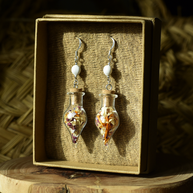 • une création unique en argent 925 et acier inoxydable, graines de job bleutées ~ les fioles contiennent des fleurs camomille, rose, lotus bleu & calendula