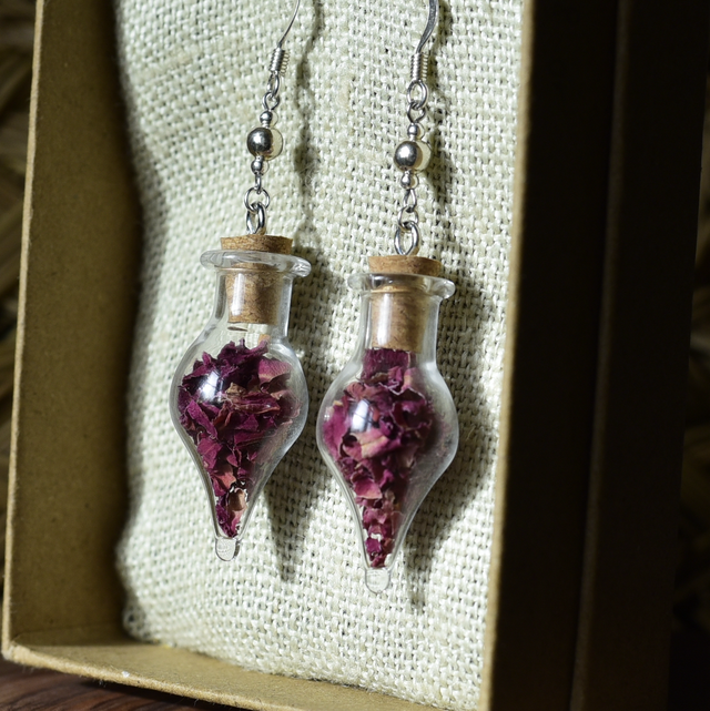 • une création unique argent 925 et acier inoxydable ~ les fioles contiennent des pétales de rose