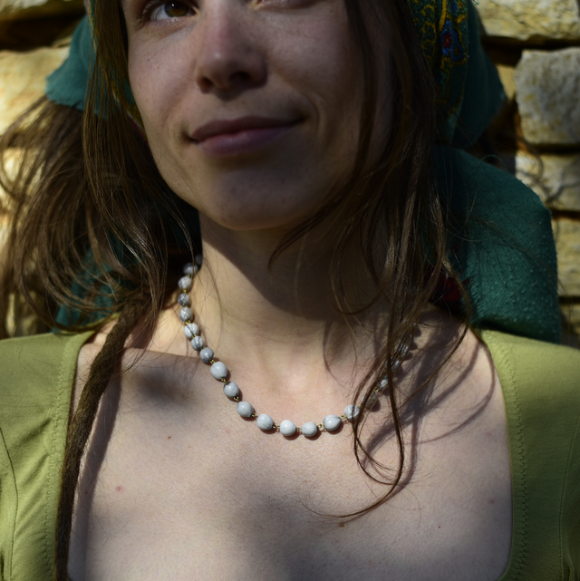• une création unique de graines naturelles de job bleutées, réglable avec un fermoir en laiton