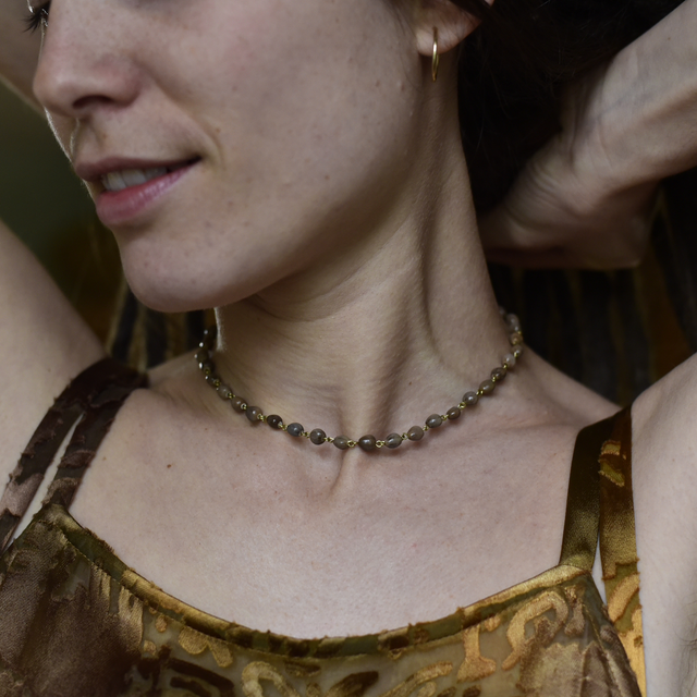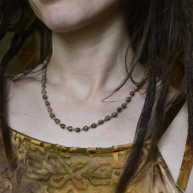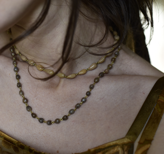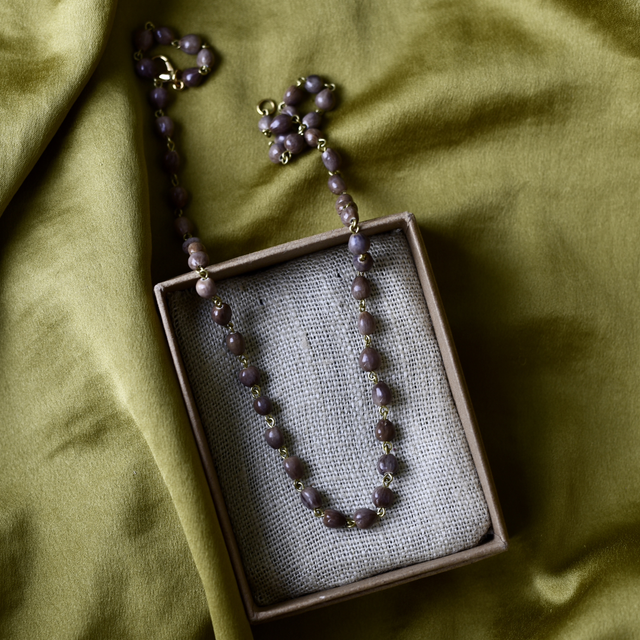 • une création unique de graines naturelles de job marrons, réglable avec un fermoir en laiton
