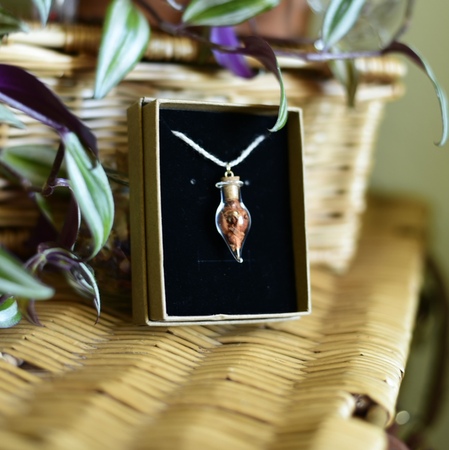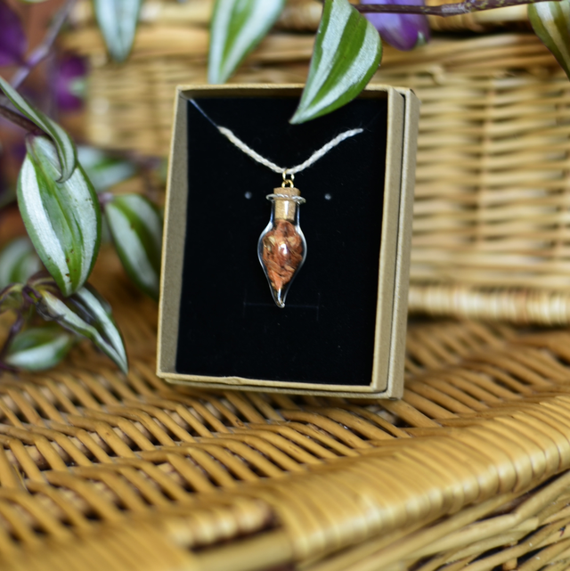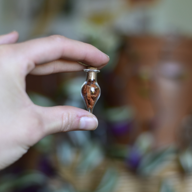 • une création unique avec un cordon en lin tressé artisanalement en France ~ gold filled (or recyclé) ~ perles de tulsi ~ fiole de wild dagga
